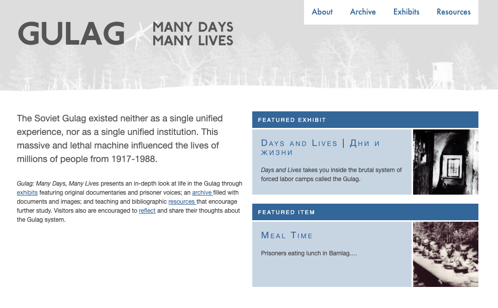 The next stage of development for digital and public historians was the creation of Web 2.0 from 2001 to 2004. With the creation of Web 2.0, the activities of blogging and Continuous Management Software became more common. Examples of historical databases and websites that were created during the stage of Web 2.0 are the Gulag: Many Days, Many Lives (pictured left) and The Histories of the National Mall (pictured right). Both of these databases utilize blogging systems to show different histories.
